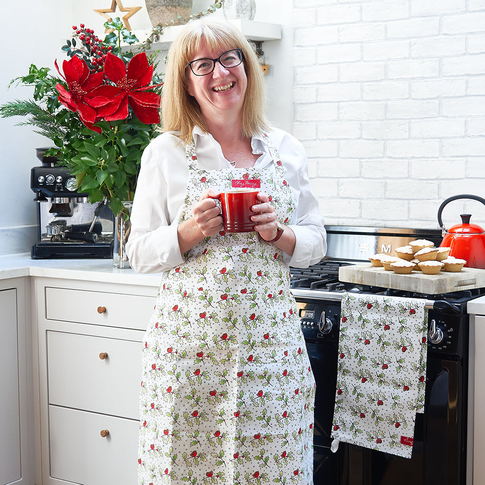 When you're having fun in the kitchen this Christmas protect your clothes from splashes and spills with this gorgeous Christmas Robins and Holly Apron.